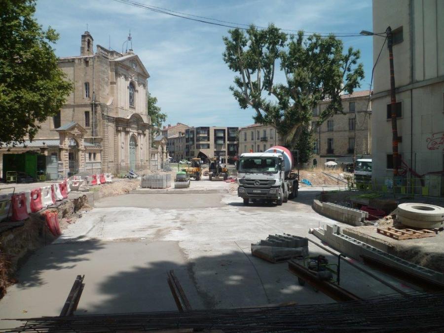 Vue de la place Albert 1er à Montpellier, depuis le bas du boulevard Henri IV, le vendredi 26 juin 2015. Copyright : Edouard Paris