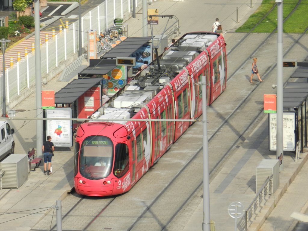 La station « Rondelet », commune aux lignes 2 et 4 de tramway, est la plus proche du parking Saint-Roch dont l’ouverture est intervenue le mercredi 1er juillet 2015 date de la photo. Copyright : Anje34