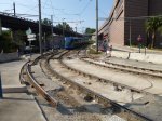 - Place du 11 novembre à Montpellier, rails manifestement usés sur voies 2 et 1 au pied du Corum sur le tronc commun des lignes 1 et 2 de tramway. Photo prise le mercredi 1er juillet 2015. Copyright : Louis Ferdinand