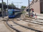 - Le jeudi 2 juillet 2015, place du 11 novembre, au pied du Corum, la rame 2020 Citadis 401 Alstom de la ligne 1 est en train de rouler sur de nouveaux rails de la voie 2 posés la veille. Copyright : Louis Ferdinand