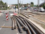 - Dans le bas de l’allée de la Citadelle à Montpellier, les rails usées de la voie 2 ont été déposés à côté de rails tout neuf destinés à la voie 1. Photo prise le jeudi 2 juillet 2015. Copyright : Louis Ferdinand