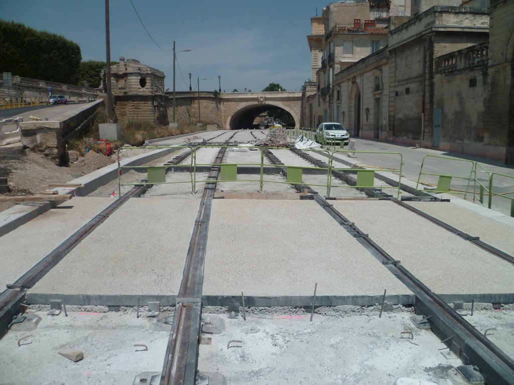 Revêtement partiel consistant en du béton désactivé au sud du boulevard du Professeur Louis-Vialleton recouvert principalement de pavés sur cette même partie sud. Phot prise le vendredi 3 juillet 2015. Copyright : Edouard Paris