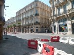 - Sur le boulevard du Jeu-de-Paume, de part et d’autre de la rue André-Michel, un aiguillage sera installé sur la voie montante afin d’orienter les rames de la ligne 3 vers la rue André-Michel et les rames de la ligne 4 vers le haut du Jeu-de-Paume, l’aiguillage à installer sur la voie descendante permettant aux rames de la ligne 4 bouclée de poursuivre vers le boulevard de l’Observatoire ou d’emprunter exceptionnellement la rue André-Michel. Photo prise le samedi 11 juillet 2015. Copyright : Edouard Paris