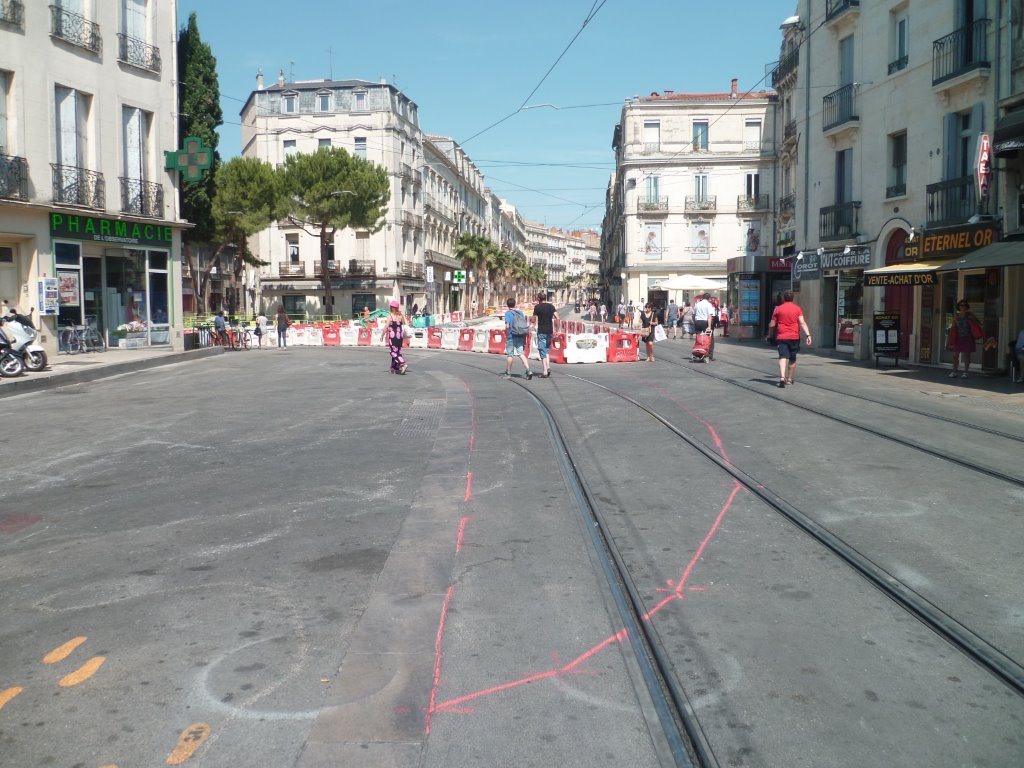 Boulevard de l’Observatoire – place Edouard-Adam, un aiguillage de raccordement talonnable sera installé à ce niveau où la ligne 4 bouclée se greffera à l’actuelle voie 1 de la ligne 3 et de l’actuelle ligne 4. Photo prise le samedi 11 juillet 2015. Copyright : Edouard Paris