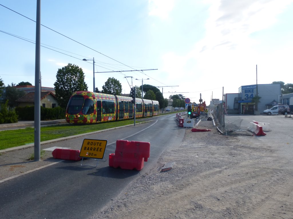Avenue de l’Europe à Castelnau-le-Lez, sur une centaine de mètres en direction du Crès, depuis le lundi 27 juillet 2015, jour où a été prise la photo, les automobilistes ne peuvent plus circuler sur la plateforme du tramway qu’ils ont été autorisés à emprunter durant près de neuf années entre les stations « Centurions » et « Notre-Dame du Sablassou ». Copyright : Louis Ferdinand