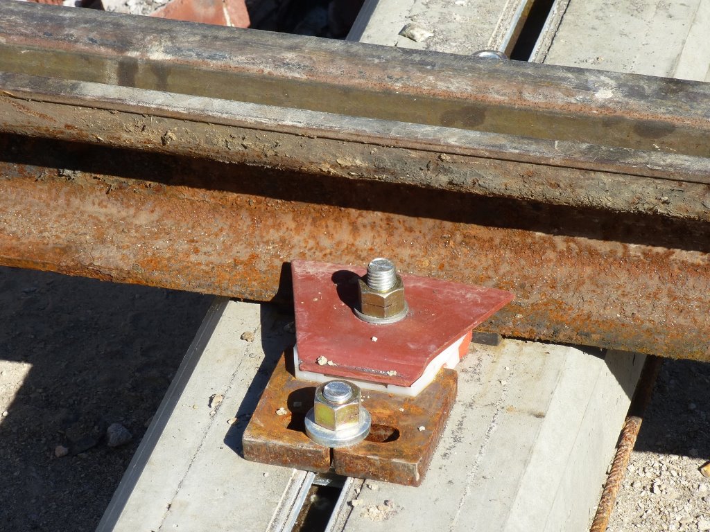 Photographie d’un fast clip australien fixé sur le patin du rail d’un appareil de voie du chaînon manquant de la ligne 4 de tramway, le dimanche 2 août 2015. Copyright : Louis Ferdinand