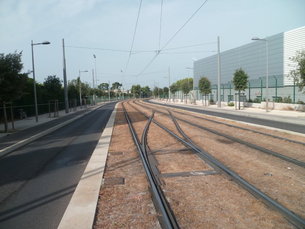 Gazon desséché par le soleil rue du Pilory à Montpellier à proximité de la station « Pilory » de la ligne 3 de tramway, le samedi 8 août 2015. Copyright : Edouard Paris