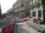 - Boulevard du Jeu-de-Paume à Montpellier, emplacement des petites portions de voies qui succèderont à l’appareil de voie qui va être installé quelques mètres avant. Photo prise le samedi 8 août 2015. Copyright : Edouard Paris