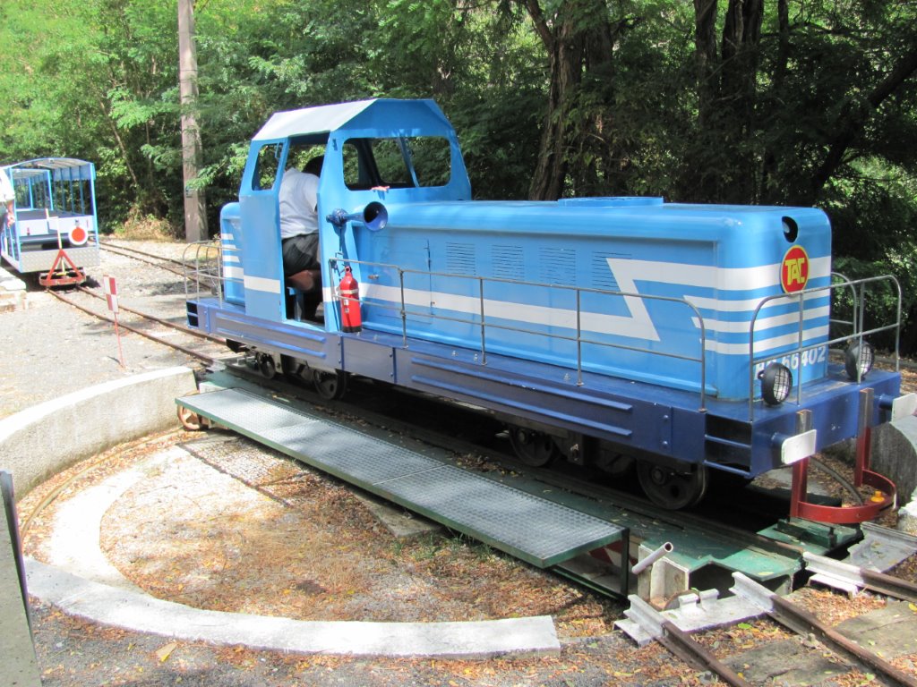 A Saint-Julien-des-Points, la BB 66402 du Train de l’Andorge en Cévennes (TAC) est photographiée sur la plaque tournante, le dimanche 9 août 2015. Copyright : Edouard Paris