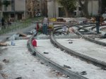 - A la limite du boulevard Pasteur et de la place Albert 1er, les trois appareils de voie, soit deux aiguillages et une traversée ont été installés, mais il reste beaucoup à faire d’ici au dimanche 23 août 2015 au soir. Photo prise le samedi 15 août 2015. Copyright : Edouard Paris