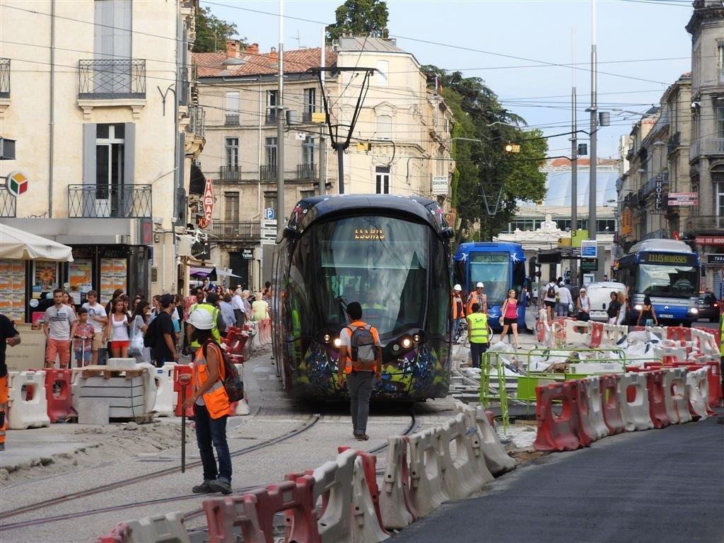 La rame 2084 Citadis 402 Alstom a été la première à se lancer sur la voie 2 pour un premier essai entre la station « Observatoire » et la rue André-Michel, le samedi 22 août 2015, en fin d’après-midi. Copyright : Anje34
