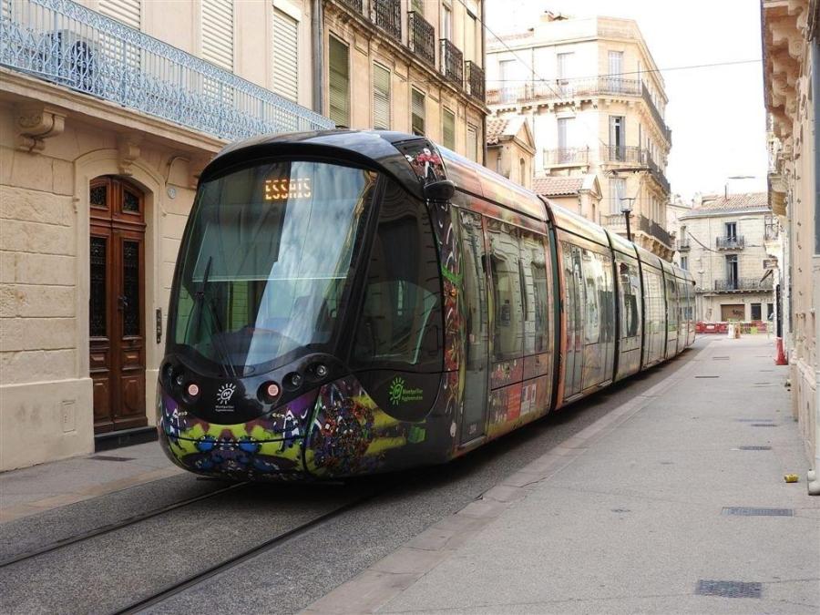 La rame 2084 Citadis 402 Alstom est photographiée rue André-Michel à Montpellier, lors de sa séance d’essais sur le secteur « Saint-Denis – Observatoire – Jeu-de-Paume – André-Michel », le samedi 22 août 2015, en fin d’après-midi. Copyright : Anje34