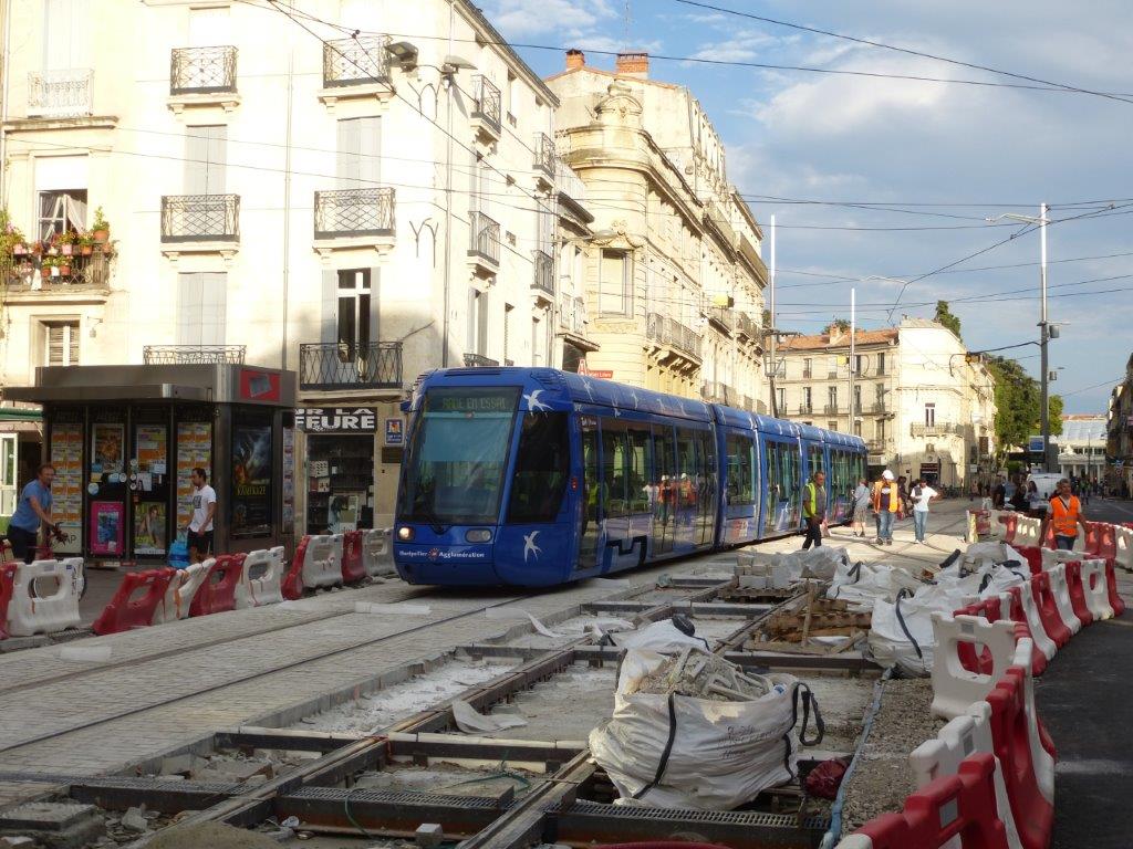 La rame 2015 Citadis 401 Alstom s’élance à son tour sur la voie 2 pour un unique essai entre la station « Observatoire » et la rue André-Michel, le samedi 22 août 2015, en fin d’après-midi. Copyright : Michel Bozzola