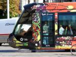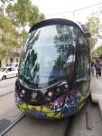 - Exemple de l’application du logo Montpellier Méditerranée Métropole sur le museau d’une rame Citadis 401 Alstom opérant sur la ligne 1. Photo prise le mardi 8 septembre 2015. Copyright : Anje34