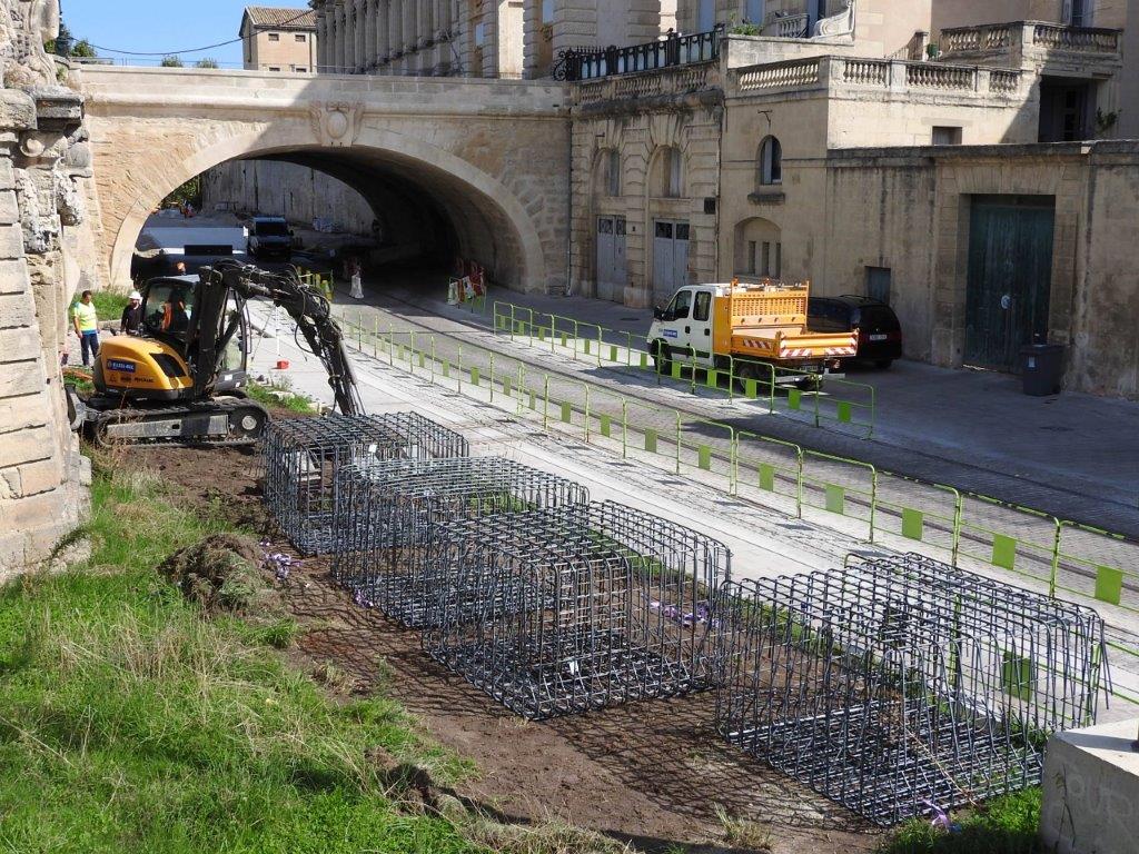 Ferraillage et engin de chantier en action en bordure de la partie sud du boulevard du Professeur Louis-Vialleton, le mardi 8 septembre 2015. Copyright : Anje34
