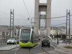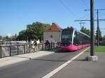 - Sur le T2 à Dijon, entre les stations « 1er Mai » et « Jaurès », la rame 1006 Citadis 302 Alstom franchit le canal de Bourgogne sur un pont où la plateforme tramway est utilisée également par les véhicules automobiles dans ce sens. Photo prise le lundi 31 août 2015. Copyright : Edouard Paris