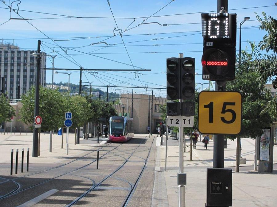 Vue sur le terminus « DIJON Gare » du T1 depuis le bout du quai de la station « Foch Gare » commune aux lignes T1 et T2. Photo prise le dimanche 30 août 2015. Copyright : Edouard Paris