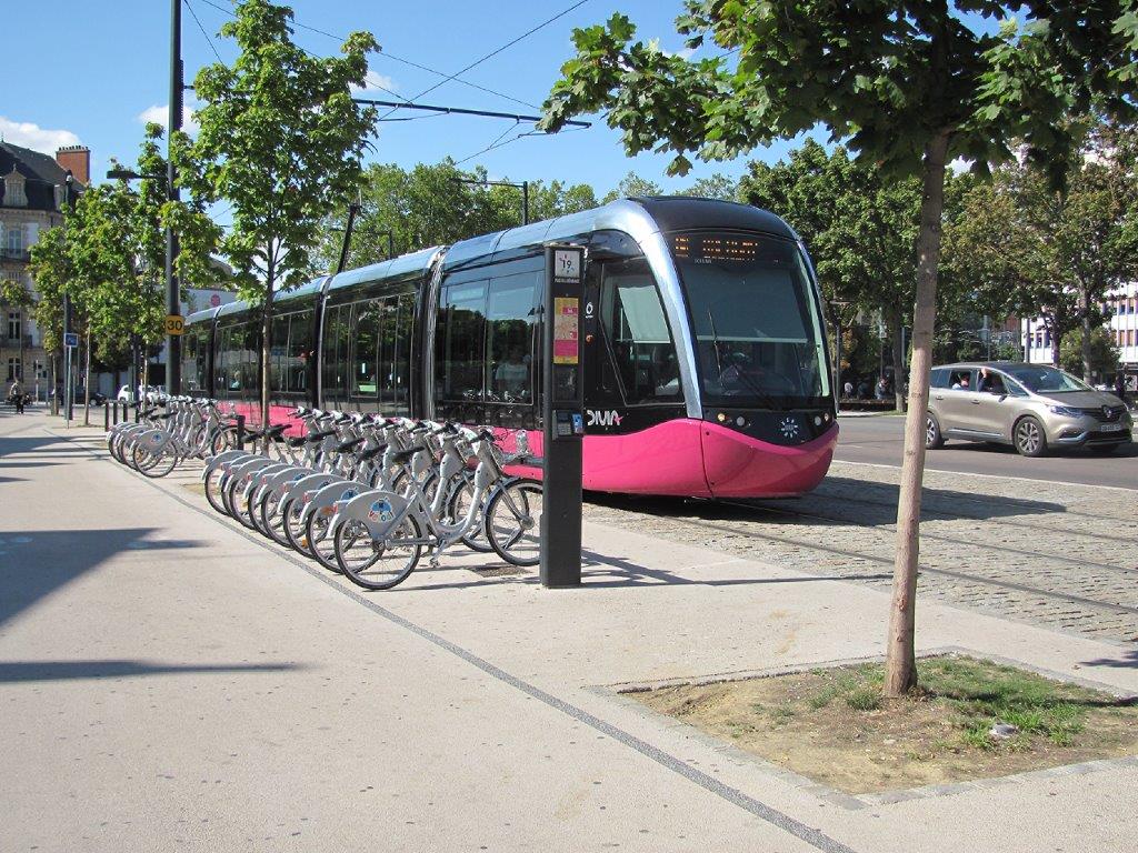 Station Velodi de la place de la République située le long de la ligne T1 où passe la rame 1015 Citadis 302 Alstom en direction de « QUETIGNY Centre ». Photo prise le mardi 8 septembre 2015. Copyright : Edouard Paris