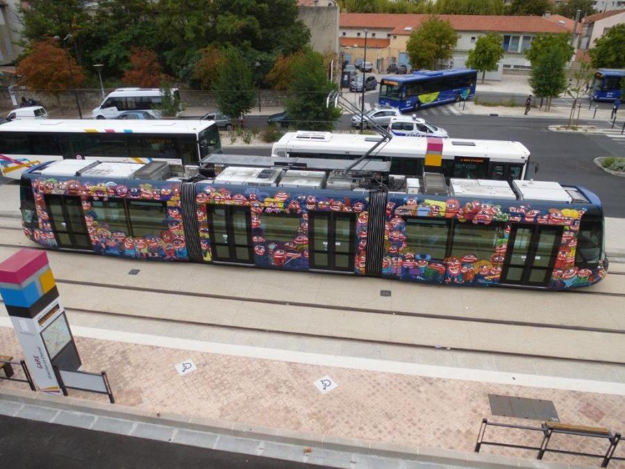 A Aubagne, la rame 003 Citadis Compact Alstom est photographiée au terminus multimodal « Gare », le vendredi 4 septembre 2015. Copyright : Louis Ferdinand