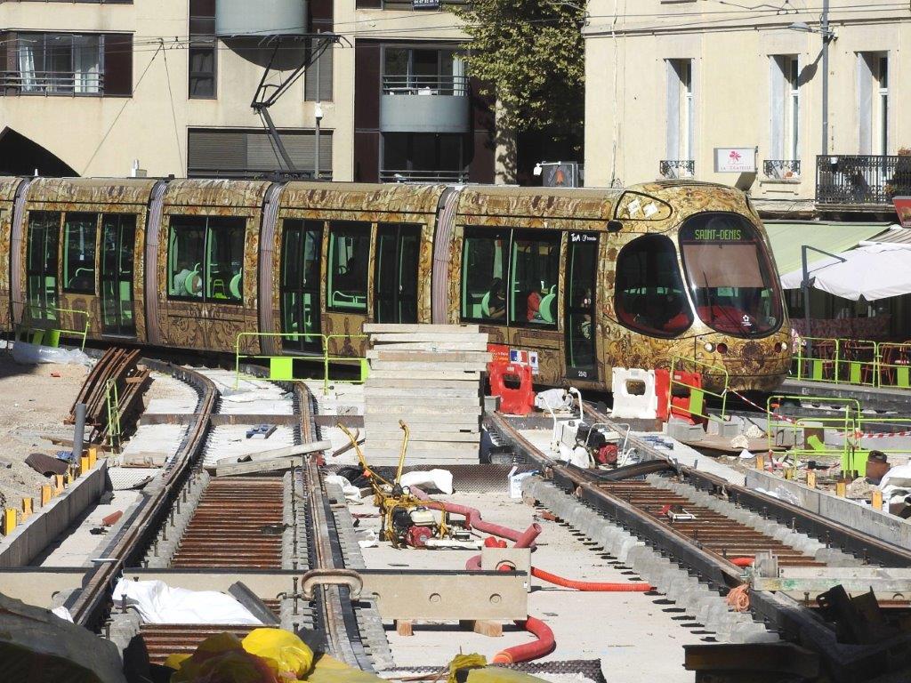 Place Albert 1er à Montpellier, au pied de l’ancien Hôpital Général, une petite section de voies est en attente du coulage du béton de blocage. Photo prise le vendredi 18 septembre 2015. Copyright : Anje34