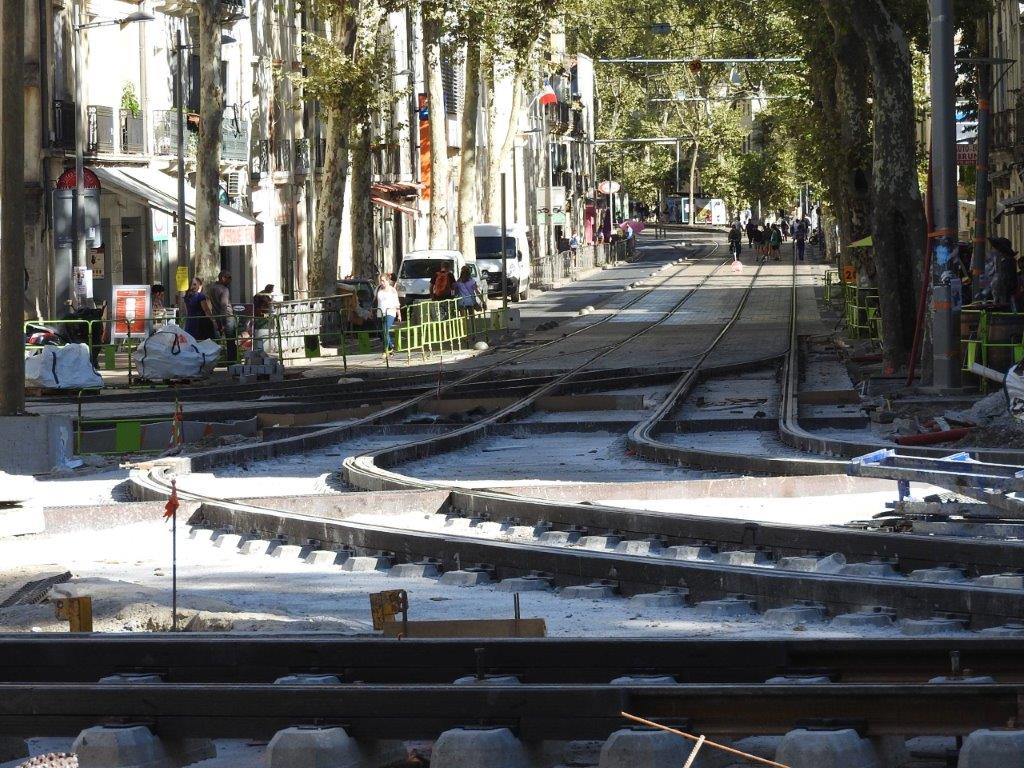 Vue en direction du boulevard Pasteur à Montpellier depuis la place Albert 1er, le vendredi 18 septembre 2015. Copyright : Anje34