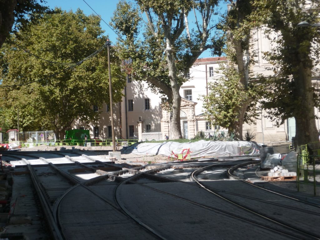 Photographie des platanes préservés de la place Albert 1er à Montpellier, prise depuis le boulevard Pasteur, le vendredi 18 septembre 2015. Copyright : Edouard Paris