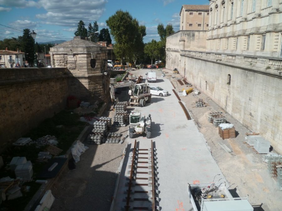 Début de la pose des voies sur la partie nord du boulevard du Professeur Louis-Vialleton à Montpellier, le mercredi 23 septembre 2015. Copyright : Edouard Paris