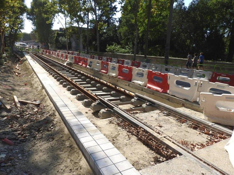 Voie descendante récemment posée sur le boulevard Henri IV à Montpellier, entre la rue de l’Ecole de Médecine et la Tour des Pins. Photo prise le jeudi 1er octobre 2015. Copyright : Anje34