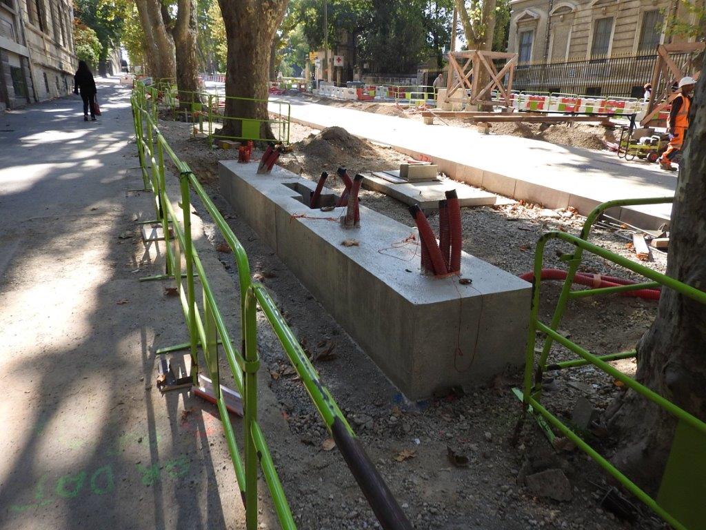 Sorties de gaines à la hauteur de la future station « Albert 1er – Cathédrale », boulevard Henri IV à Montpellier. Photo prise jeudi 1er octobre 2015. Copyright : Anje34