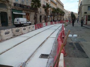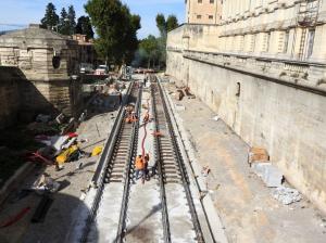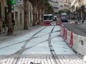 - Progression de la pose des voies sur la partie nord du boulevard du Professeur Louis-Vialleton, le jeudi 8 octobre 2015. Copyright : Anje34