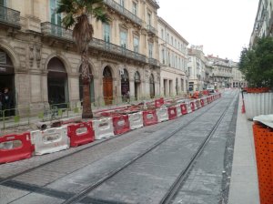 Le chantier de la réalisation du quai de la future station « Saint-Guilhem – Courreau », boulevard du Jeu-de-Paume », à la hauteur de la boutique Nespresso, se poursuit. La première bordure de quai, posée la semaine dernière, avait disparu le vendredi 16 octobre 2015.