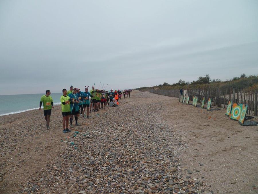 Épreuve de tir à l’arc sur la plage de Villeneuve-lès-Maguelone pour les concurrents de la seconde édition de la ruée des fadas de Palavas-les-Flots, le dimanche 18 octobre 2015. Copyright : Edouard Paris