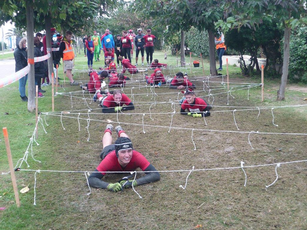 Les Hauts-Garonnais de l’équipe des Macarel’s avancent lentement sous les ficelles pendantes électrifiées lors de la seconde édition de la ruée des fadas de Palavas-les-Flots, le dimanche 18 octobre 2015. Copyright : Edouard Paris