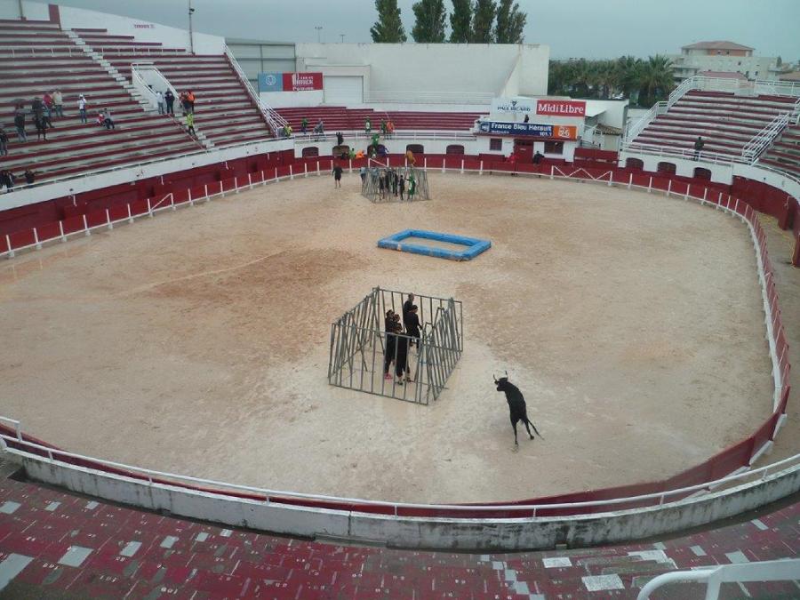 Dernière épreuve dans les arènes pour les concurrents de la seconde édition de la ruée des fadas de Palavas-les-Flots, le dimanche 18 octobre 2015. Copyright : Edouard Paris