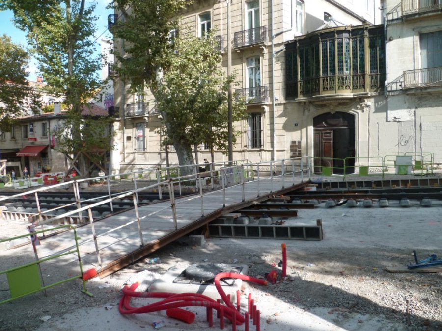 Photographie de la passerelle provisoire, qui fait jaser, prise le jeudi 8 octobre 2015, boulevard du Professeur Louis-Vialleton à Montpellier. Copyright : Edouard Paris