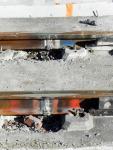 - Zoom sur les deux dernières soudures de rails réalisées sur la partie nord du boulevard du Professeur Louis-Vialleton à Montpellier, à la hauteur de la place d’Aviler, le vendredi 23 octobre 2015. Copyright : Anje34