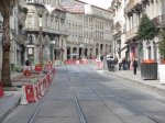 - Place Albert 1er à Montpellier, la pose des pavés avance lentement mais sûrement entre les rails du tronc commun où circulent les rames des lignes 1 et 4. Photo prise le dimanche 25 octobre 2015. Copyright : Edouard Paris