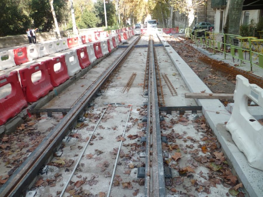 Sur le haut du boulevard Henri IV à Montpellier, entre la rue Jean-Jacques-Rousseau et la rue Ecole de Médecine, une portion de voie est dans l’attente de son revêtement. Photo prise le lundi 9 novembre 2015. Copyright : Edouard Paris
