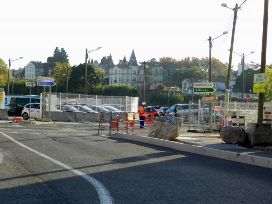 A la sortie du parking silo, les automobilistes ont le choix entre se diriger vers le centre historique et Millau par l’avenue de Maurin ou vers les Prés-d’Arènes et l’A9 par le boulevard Vieussens. Photo prise le mardi 10 novembre 2015. Copyright : Anje34