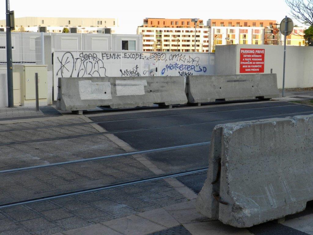 Dans le bas de l’avenue de Maurin, le point d’accès et de sortie de la direction régionale de la SNCF a été supprimé. Photo prise le mardi 10 novembre 2015. Copyright : Anje34