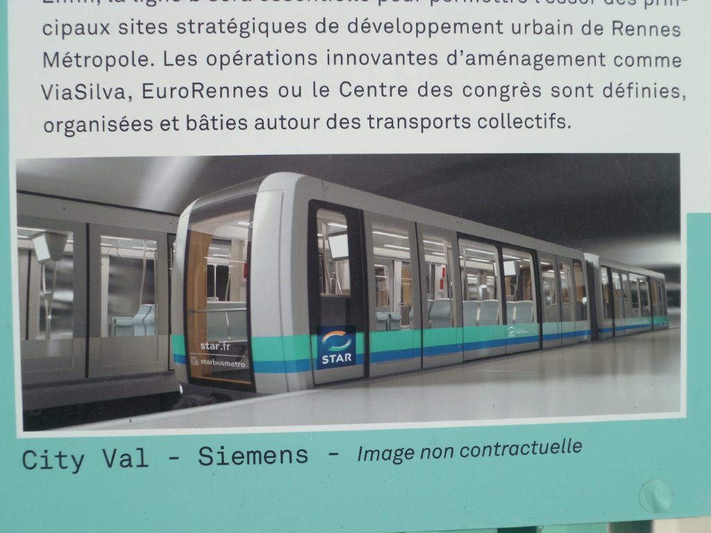 Image non conventionnelle du CityVal Siemens choisi pour la future ligne b du métro de Rennes, non compatible avec la ligne a de métro. Document : Rennes Métropole