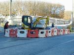 - Le mardi 1er décembre 2015, à la limite des boulevards Ledru-Rollin et du Professeur Louis-Vialleton à Montpellier, un engin de chantier réalise une fosse dans laquelle sera coulé du béton de scellement de la fixation d’un mât support de lignes aériennes de contact. Copyright : Anje34