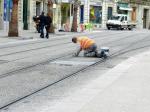 - Boulevard Pasteur à Montpellier, une équipe vérifie un appareil de voie installé au cours de l’été 2015 dans le cadre du chantier de bouclage de la ligne 4 de tramway, le jeudi 3 décembre 2015. Copyright : Edouard Paris