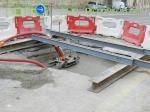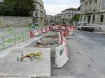 - A la limite des boulevards Ledru-Rollin et du Professeur Louis-Vialleton à Montpellier, vue sur la fixation où sera érigé un mât support de lignes aériennes de contact. Photo prise le jeudi 3 décembre 2015. Copyright : Anje34