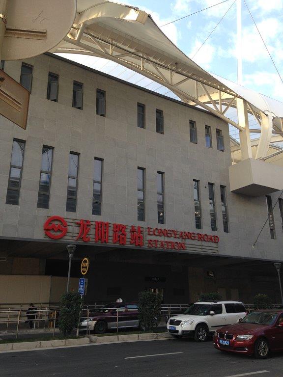 Entrée de la station Longyang Road de la ligne 2 du métro de Shanghai, faisant face à celle de la station du Transrapid de Shanghaï. Photo prise le samedi 19 décembre 2015. Copyright : Karine D