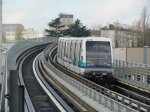 - Sur la ligne a de métro rennais, une rame VAL 208 Matra Siemens vient de quitter la station « Pontchaillou », en direction du terminus « J.F. Kennedy », le mardi 3 novembre 2015. Copyright : Edouard Paris