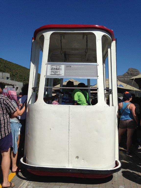 Ancienne cabine d’une capacité de 25 places du téléphérique de la montagne de la Table exposée à la station inférieure située sur Tafelberg Road à Cape Town. Photo prise le mardi 29 décembre 2015. Copyright : Karine D
