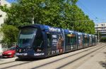 - La rame 2099 Citadis 402 Alstom multiligne pelliculée EuroBasket 2015 est photographiée sur la ligne 1 entre les stations « Universités des Sciences & Lettres » et « Saint-Eloi », le jeudi 21 mai 2015. Copyright : Louis Ferdinand