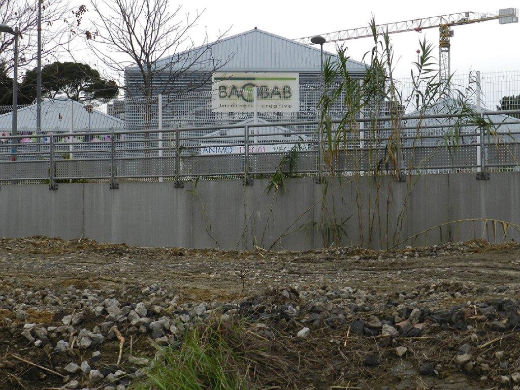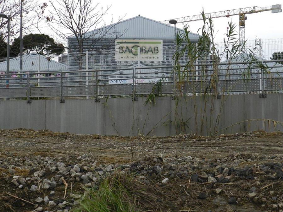 Rue de Cholet à Montpellier, la plateforme a été déferrée à la hauteur de l’enseigne Baobab. Photo prise le dimanche 3 janvier 2016. Copyright : Anje34