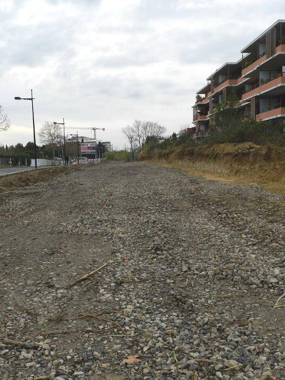 Le long de la rue de Cholet à Montpellier, la plateforme a été déferrée à la hauteur de la résidence du Parc des Hirondelles. Photo prise le dimanche 3 janvier 2016. Copyright : Anje34
